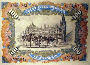Aqui tenemos el reverso de un billete de 100 pts