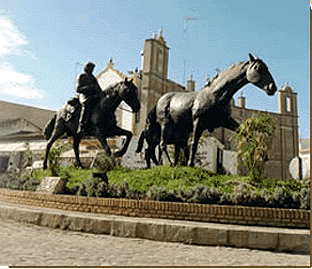 Un caballo de nuestra Feria de Sevilla, que porta jinetes, amazonas y grupas por el real con portes de auténticos centauros , escapados de poemas de Romancero del Ochocientos de Fernando Villalón Mi caballo se ha cansado/ mi caballo se ha dormido ......:Un caballo con un auténtico renacimiento del rejoneo moderno de Angel Peralta , que firmó en el albero maestrante tardes gloriosas del perfecta simbiosis entre el toro y el caballo: asi como Javier Buendia nos trajo los aires de la faena campera de garrocha y pañuelos atados a la chaquetilla. Unos caballos a la calesera de cascabales y borlajes de Casa Alba de la calle Francos, enganchados en tronco, en cuarta a la media potencia , en faetones, manolas o jardineras, que escapando a su marco feriante , crean una imagen irrepetibles , por jardines, plazas y monumentos de nuestra capital .- Un caballo al que en Mayo se le atará a la montura, la manta , el marselles de paño, y el capote , para cruzar las arenas de los caminos, la Raya, Palacio, Gelo, Juliana, Cuatrovitas,El Quema; en una geografia mas propia del Cielo que de la Tierra y que nos llevaran a su lomo a unas autenticas puertas del Paraiso en el Puente del Ajoli hacia Reina de las Marismas .- Un rio de caballos procedente de la vecina localidad de Dos Hermanas en torno a su reina la Virgen de Valme, llenara a Bellasvista , donde Sevilla se viste tambien de romera y en torno a su ermita se revivira años tras años las hazañas y devociones fernandinas .- Miles de coches de caballos en nuestra Feria y que tras dieciseis años consecutivos dan el mas verdadero pregón de enganches en nuestra Maestranza , como el mejor de los pregones feriantes o en otoño miles de caballos desde hace mas de once años en el Palacio de Congreso, creran una autentica Feria de Invierno sevillana ( por favor San Miguel ni me lo nombre ) .- Pues bien señores, con este auténtico curriculum equino , nuestro fiel compañero y amigo el caballo ¿ no se es mas que merecedor de un monumento en nuestra siempre Muy Desagradecida ciudad de Sevilla?.Que pedazo de monumneto le pordria haber construido nuestro Ayuntamiento , con la mitad, de la mitad, de las mitad de los trescientos millones que se gastaron en el pastiche cateto y pueblerino de San Miguel . Por un mas que merecido monumneto al caballo a nuestro CABALLO ANDALUZ en Sevilla.-