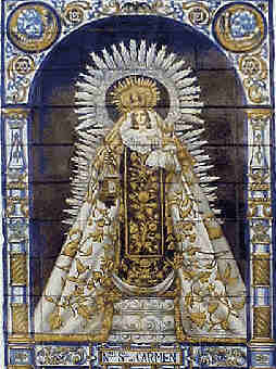 Sevilla 7 de Julio 2002 Siguiendo con nuestro mes de Julio carmelita, vamos a realizar un detenido recorrido por todos los lienzos cerámicos que hay en nuestra ciudad dedicado a la Virgen del Carmen que no son pocos y lo que detona la arraigada devoción que hay en nuestra ciudad, aunque no tengamos playa , pero si tenemos rio , hacia esta devoción tran veraniega .-