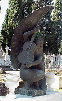 angel ,con una guitarra entre sus manos alzandola al Cielo . Es obra del