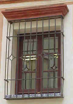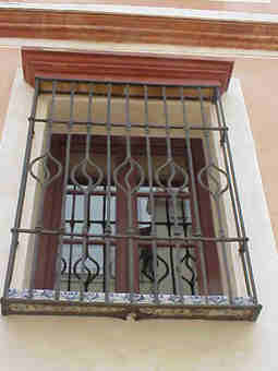 Sevilla 20 de Junio 2002 Puesto que nuestra amada Sevilla en estos dias de holganza y cumbrosas nos la han puesto a la pobre enjaulada, , cercada y enrejada, hoy vamos a hablar de rejas .- No hay duda que si el alma de Sevilla se volviera de hierro sería una reja forjada y hoy una vez mas La Sevilla que no vemos, es mas no vemos que nunca, pues las imagenes que traigo aqui estan en plena calle a la vista y posiblemente mas de un propio o foraneo no ha reparado en ellas .- Nos situamos en la calle Levies , en pleno corazón de San Bartolome donde el 3 de Marzo de 1627 nació Miguel de Mañara Vincentelo de Leca, en esta casa que comprara su padre cuatro años antes .- Don Miguel de Mañara que fue todo un personaje digno de toda uan novela de capa y espada, licencioso , mujeriego y pendeciero ; de pronto le dio a su vida un giro de trescientos sesenta grados y fundó el Hospicio y Hospital de la Santa Caridad, entregando su vida , hacienda y fortuna al cuidado de los pobres y menesteroso e incluos abandono su casa y se marcho al hospital donde murio con fama de santidad el 9 de mayo de 1679 .- Pues bien en esta impresionate casa-palacio sita en la recoleta calle Levies entre otras muchas cosas dignas de la mas detenida observacion tiene la mayor colección de rejas que hay en una casa sevillana .- Concretamente en us fachada hay dieciseis de las que descontamos las cinco inferiores que son basicas y rudimentarias pues de las once restantes, diez son completamente diferentes , algunas de gran bellezas y todas estan en la misma fachada .- Observé y comparelas en este alarde de