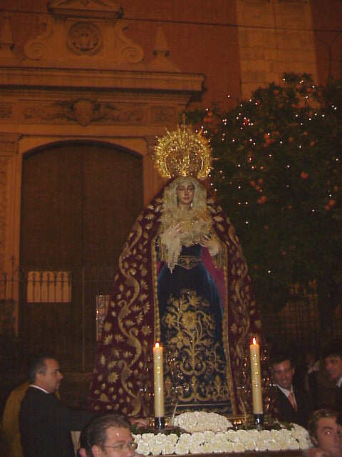 LA VIRGEN DE LA MERCED AL FONDO LA FACHADA CERRADA DEL SALVADOR