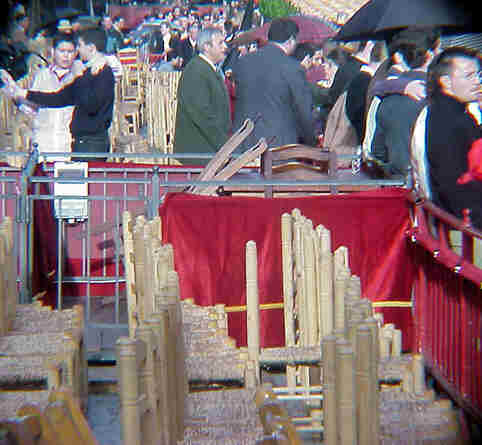 con un dosel rojo y las sillas volcadas s ele conmoce popularmente como
