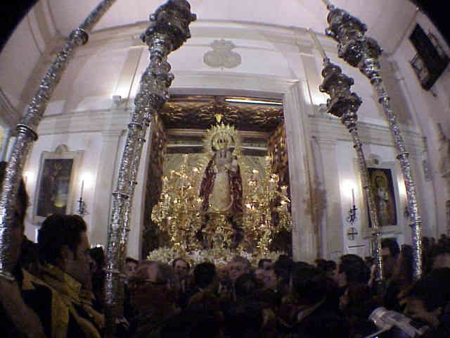 LLEGO HASTA EL ATRIO DE LA BASILICA MACARENA . SE ASOMÓ A LA PUERTA