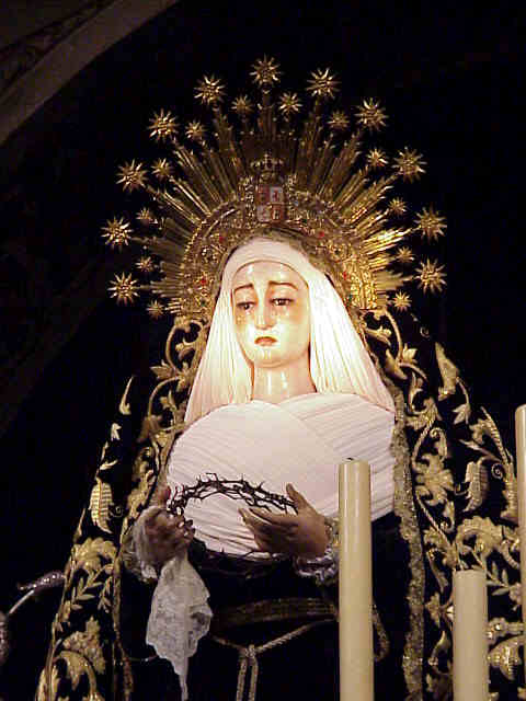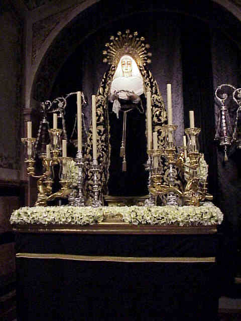 VISPERAS A SU TRASLADO AL CEMENTERIO 1 de Noviembre de 2003 , 8H 30 de la mañana CON ESTA SOBRIEDAD, CON ESTA FINURA , CON ESTA SEVILLANIA IRA MAÑANA LA SOLEDAD DE SAN LORENZO EN SU TRASLADO AL CEMENTERIO DE SAN FERNANDO A PRESIDIR LA MISA DE DIFUNTOS QUE ADEMAS ESTE AÑOS SE CONMEMORA EL 150 ANIVERSARIO DE NUESTRO CAMPO SANTO NO HAY DUDA QUE LA PRIOSTIA SOLEANA UNA VEZ MAS HA SABIDO ESTAR A LA ALTURA,CON LA REGLA DE ORO DE LA ELEGANCIA LA SENCILLEZ