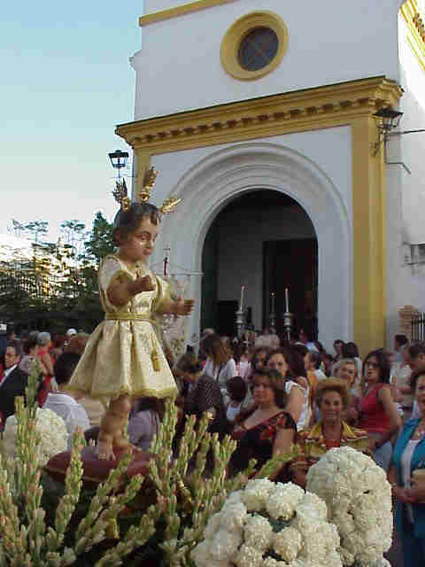 NIÑO JESUS EN PARIHUELA PORTADO POR NIÑOS |