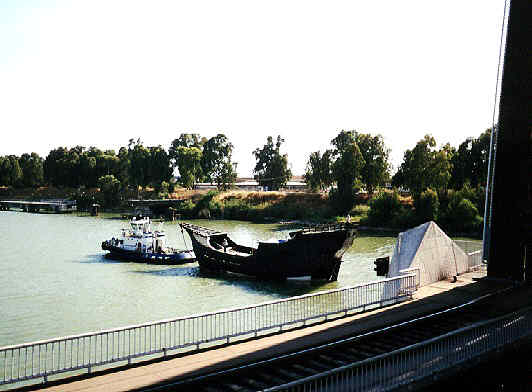10 de Julio de 2004 Ayer en una tibia tarde de verano , casi en silencio y ante la indiferente ignorancia de los sevillanos la Nao Victoria ( reproduccion ) volvio a navegar por el Guadalquivir , camino de un viaje que comenzara hoy y tras varias escalas culminara en Aichi -Japon_ La Nao Victoria ( la original) después de 3 años menos 14 días de navegación, el 8 de septiembre de 1.522 la expedición al mando de Juan Sebastina Elcano, tras recorrer 14.000 leguas (78.000 Km.), llegaron a Sevilla con solo 18 hombres de los 250 que habían partido y cargada de especias.Era la primera vez en la historia de la Humanidad que se constataba algo que se sospechaba la Tierra era redonda .Un viaje que habia comenzado Magallanes y que el 27 de Abril de 1.521 , fue muerto con otros capitanes y numerosos marineros de la flota expedicionaria bajo las armas de indígenas de las Filipinas, Tras una serie de peripecias dignas de la mejor novelas navales Elcano asumio el mando y culmino con exito esta epopellica hazaña .-