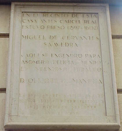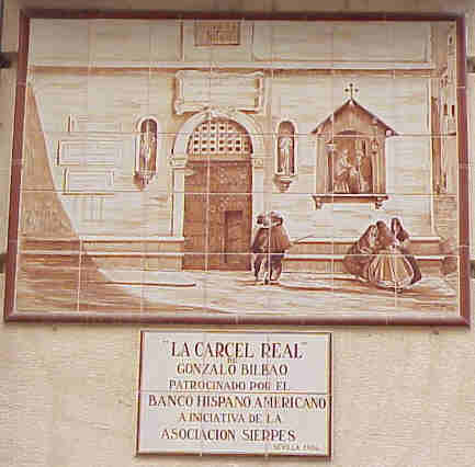 | JULIO DOMINGUEZ ARJONA 18 de Septiembre de 2004 Seguimos con esta quincena cervantina y a pocos metros del monumento que veiamos el otro dia concretamente en la esquina de la calle Sierpes con Francisco Bruna, en la esquina de la sede central de la Caja San Fernando de Sevilla se encuentra esta placa de marmol que para los que anden chungo de vista se la transcribo : EN EL RECINTO DE ESTA LA REAL ACADEMIA SEVILLANA DE Efectivamente esta fue la ubicación de la Carcel Real desde el siglo XIII hasta 1837 ( ahi es nada ) tras diferentes reformas y remodelaciones . Su ubicacion era extrategica pues no debemos de olvidar , la proximidad de la Real Audiencia hoy sede de la Caja de Ahorro San Fernando en la Plaza de San Francisco .- El texto de la placa es correcto aunque habria que matizarlo un poco y ampliarlo . Cervantes estuvo en la trena real en dos ocasiones una en 1597 y otra en 1602, es decir en termino penitenciarios actuales fue reincidente .- Pero no solo Cervantes estuvo en el trullo , tuvo otros presos ilustres como Mateo Alemán, los escultores Juan Bautista Vázquez , Alonso Cano y Pedro Torrigiano.- Mateo Aleman que en su Guzman de Alfarache describe la carcel :"Ella es un paradero de necios, escarmiento forzoso, arrepentimiento tardo, prueba de amigos, venganza de enemigos, república confusa, infierno breve, muerte larga, puerto de suspiros, valle de lágrimas, casa de locos donde cada uno grita y trata de sola su locura. Siendo todos reos, ninguno se confiesa por culpado ni su delito por grave". Lo curioso es el amigo Mateo , redactor de las reglas de la Hermandad del Silencio , era hijo del medico de la prisión .- Los escultores Alonso Cano- al que se le atribuye la Inmaculada que esta en San Julian ( antes que los hermanos de la Hiniesta , me ponga a caldo. les aclararae que esto no lo digo yo ; me remito a la bibliografia de la Sevilla Mariana . Repertorio iconografico de Juan Martinez Alcalde , Anecdotas , leyendas y curiosidades ineditas de la Semana Santa de Sevilla . Fernando Orgambides Jose Fernandez Martinez , Federico Gacia de la Concha Delgado y Antonio Mañez Manaute ) y Juan Bautista Vazquez El Viejo el autor del Cristo de Burgos , tambien estuvieron en el talego real.- Imaginesen en la carcel el redactor de unas reglas y dos escultores; afortunadamente en el siglo XVI, no existia ,ni internet, ni ciertos foros despellejadores en Cristo, pues imaginenses como lo hubieran puesto.- Tambien el genial escultor italiano Pedro