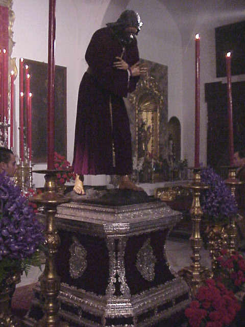 ![]() Era el 2 de Enero de 2004 veiamos esta imagen, triste muy triste, del primer besamanos del año del Señor de Pasion en la Iglesia de la Misericordia , una imagen de una hermandad en un callejón casi sin salida. Hoy la que fuera su casa es un centro turistico arqueologico . Reportaje completo VER