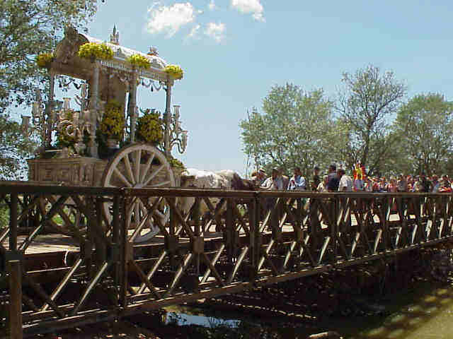 Rocio 2004 , esto mas que la romeria del Rocio, parecia como si estuvieran filmando la versión flamenca del El puente sobre el rio Kwait, como si los esclavisados soldados britanicos por las fuerza nipones, hubieran cambiado sus uniformes por el traje de faralaes y vestidos de gitanos ( como dice los que viene a las Ferias del Rocio ) Amen de una visión tan absolutamente rociera como desesperados soldados con megafonos, informando y pastoreando , a los peregrinos que en el puente solo se podia circular, pero no detenerces en el para cantar las tradicional Salve y sevillanas de haber culminado un Camino .-