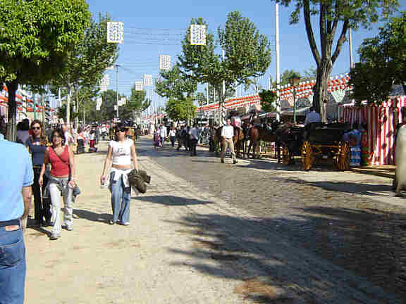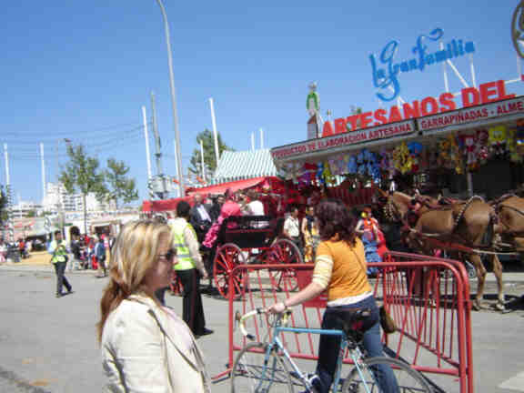 ¿Esta desabrida Feria es la que queremos? , ¿En esto es lo que nuestra Delegación de Fiestas Menores quiere reducir un Feria Universal, en una triste feria de pueblo cateta donde personas y caballos pasen por el mismo sitio , formado un totus revolutum desaliñado y vacio ?.- Por cierto, la Feria este año por aquello de laico cambiazo de quitarle el dia a San Fernando ( que digo yo que se lo podria quitar al dia 1 de mayo Fiesta del Trabajo ) , hace que el Martes de Feria lo reciclen en un martes adomingado , es decir ayer fue el tope, ya vamos cuesta abajo de asistentes, que ni su corazones , ni sus carteras que estan al lado, tienen fuerza de aguantar una Feria entera y ya desde el primer dia y como el tiempo acompaña empieza a sonar la palabra "playa".- Señores de Fiestas Menores, señores del Club de Engache, si esto es lo que anda buscando, una paseo restrictivo, aunque los metodos sean diferentes , esto es lo que ayer se vio el dia mas álgido y en los ultimos dias será aun peor .- Señores potenciales visitantes, si viene buscando la perdida brillantes de un paseo de caballos, aqui este año no la van a encontar, esto VER desgraciadamente desde luego que no .-