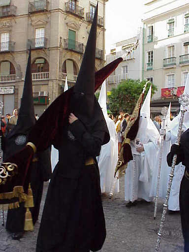 5 de Febrero de 2005 Como ya se habran percatado un servidor esta muy preocupado no solo con el inevitable nacimiento del Sabado de Resurección sino de una serie de repercuciones que pueden tener en el ecosistema semanasantero .- No nos equivoquemos, cualquier cambio en este delicado equilibrio puede tener impactos desconocidos, esto es como las extición de la mosca, que conlleva la extinción de la rana que se alimentaba de esas mosca; la desaparición de la culebra que se alimentaba de esa rana , a su vez del aguila culebrera , que se comia la bicha y la ruina del furtivo que mataba y disequeba la rapaz y ahora no puede pagar las letras del coche, en resumen . la desaparición de una mosca puede llevar al juzgado a un señor . Pues en esto del mundo cofradiero puede ocurrir lo mismo .- No se si sabrán algunos avezados capillitas que desde el 20 de marzo de 1997, existe un especial hermanamiento, entre las Hermandades de los Javieres y la Hermandad del la Resurección , dandose la circunstancia, de que hay nazarenos del Resucitado, que salen el Martes Santos en el cortejo de los Javieres y viceversa , una representación de los Javieres salia en el hasta ahora llamado Domingo de Resureccio acompañando al cortejo del Resucitado . Esto lo pueden ver en la presente fotografia nazarenos y el estardarte de los Javieres seguidos por el estandarte del Resucitado , en un antiguo Domingo de Resurección .- ¿Motivo? Pues la hermandad con sede canónica en Omniun Sanctorum tuvo que abandonar el templo por obras y permanecer entre los años 1993 y 1996 en la sede canónica del Resucitado y desde la merirada fecha existe una especial fraternidad, que incluso llevan a reservarse algunas paginas de sus respectivos boletines, para hacer publicaciones de sus reciprocas hermandades .- Pero claro , el promotor de esta idea ( que tiene nombre y apellido ) y desde donde ha venido la idea del cambiazo de dia; no ha tendio en cuenta esto, pues veran ustedes, ahora el dilema que se puede presentar ¿donde van a poner la representación la Hermandad de los Javieres , en el Santo Entierro ( o Santo Transito, Jesus no esta muerto, sino esta dormido - como diria Aurora Bautista no en Locura de Amor, sino en Locura Cofrade - momentos antes de despertarse y resucitar ) o llevaran su estandarte acompañando a la Hermandad del Resucitado con motivo de este hermanamiento , al salir las dos el mismo dia ?. Estaran ustedes conmigo que es un problema peliagudo.- Ya puestos a resolver esto , una solución seria que se repartiera entre una y otra hermandades las representaciones , se podria hacer por criterio de colores , las túnicas blancas o con capas blancas con el Resucitado, las de tunicas negras con el hasta ahora Santo Entierro; con la única excepción de los Javieres, por motivos de confraternidad. Otra opción sería por cronologias de dias a saber desde el Domingo de Ramos ( que por ahora continuara llamadose asi ) a Martes Santo , los estandartes en el Resucitado y los del Miercoles a Viernes Santo con el Santo Entierro .o quizás por cronologia litúrgica, aunque esta seria muy delicada pues entonces las Hermandades de Gloria se querian tambien meter, ademas de la Sacramentales y entonces tendriamos una especie de Corpus anticipado , para entonces irian los de Fiestas Mayores y en pleno Sabado de Resureccion te monta una feria de ganado en la Plaza de España .- ¿No ven ustedes ? un ligero cambio, la que se puede liar ; pero esto son los tiempos que nos han tocado vivir , revisamos ideas, conceptos, simbolos y tradiciones , hasta su............... desfiguración .- Señores de los Javieres yo que ustedes haria un duplicado de estandartes por si acaso .-