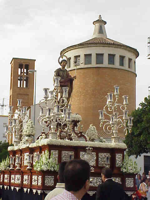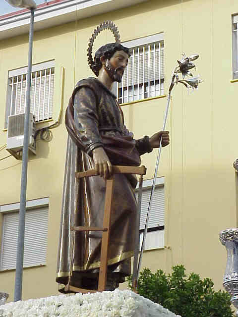 SALIDA PROCESIONAL DE SAN JOSE OBRERO AL FONDO SU PARROQUIA |