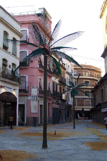 15 de Diciembre de 2005 La asociación de comerciantes de Puente y Pellón, ha decidido decorar la Plaza del Pan con dos originales palmeras de plástico, lo que, han acompañado de la arena sobrante de las obras .- Suponemos en buena logica que dada la inmediata vecindad de la Parroquia del Salvador , ( "Abierta previo paso por taquilla por obra") que estamos ante un homenaje al paso de Misterio de la Borriquita, que se encuentra refugiado en la Iglesia de la Anunciacion y que dudamos mucho que vuelvan por esto lares .- Es de destacar que no esta la figura de Zaqueo, que por cierto lo podria hacer patron de Parques y Jardines, dado que esta con el hacha talando hojas, con lo que le gusta a esta departamento de nuestro Ayuntamiento Obrero Español talarlo todo .- Quizas estamos equivocados y como nuestra IU también propondrá en el Pleno solicitar al Gobierno español que presente al Parlamento Europeo la creación «de un comité evaluador de la gravedad de la contaminación de Faluya en Irak, pues igual es un homenaje de hermanamiento a esta localidad iraqui .- El libro de los gusto esta en blanco y el del mal gusto mejor no escribirlo, pero no hay duda que en una ciudad donde tenemos La Palmera , un paseo inundado de palmeras, por donde van la criaturitas ar campo er Beti ademas de las que hay en la Plaza de America o Parque de la Palomas, poner una cosa como "esto" , sencillamente es de un penoso mal gusto , que desgraciadamente campea por sus respetos en nuestra ciudad y lo grave es que no habra ningún " a quien corresponda de turno " que ordene la retirada de esta hortera digna de la "casa de la Omaita" , pues el mal gusto debe ser por lo menos privado .- Puesto que la Plaza del Pan al final ha quedado