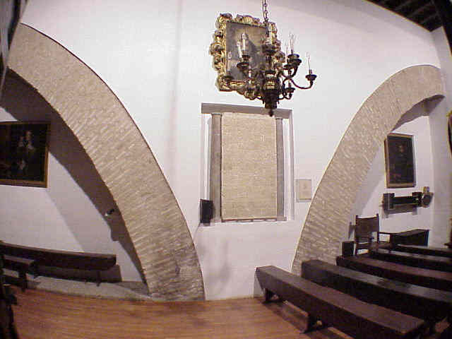 Dentro de la sala de cabildos se ve perfectamente los arcos ( asi como en otras dependencias y patios del Hospital ) y tambien la firma de las Reales Atarazanas, esculpida en piedra y a su lado una transcripción en latin mecanografiada y su traducción al español . Para los que anden mal de la vista se lo amplio :