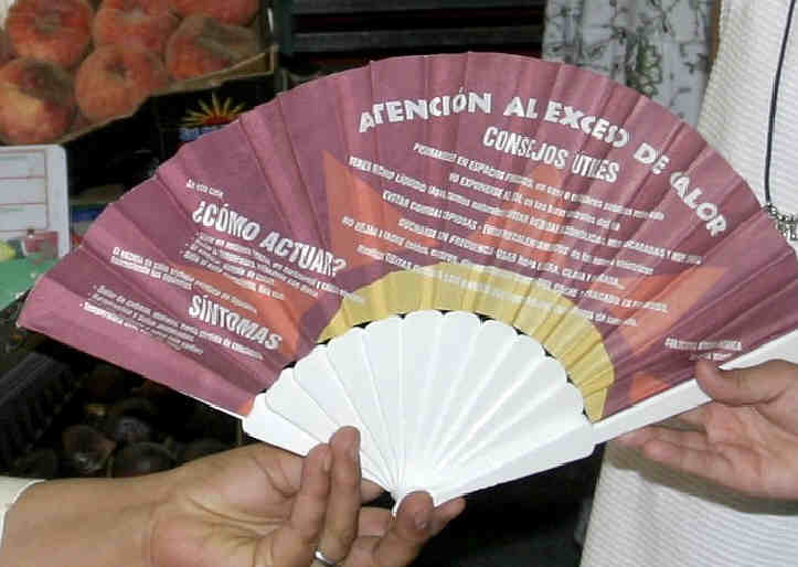 27 de Julio de 2006 Antes de que mis leales detractores se me tiren al cuello, tachandome de todo lo tachable de social y politicamente incorrecto, de fascitas ( por mi recuperación de la Memoria Historica sevillana y republicana , decir que los rojos no fueron unas hermanistas de la Caridad es de facha, afortubadamente nuestro ZP ha usado el recurso ponceliano de meter el freno y la marcha atrás a este desaguisado de revanchismo politico de los del "no pasaran" y a final salieron por patas por los Pirineos ), pues no se si conoceran la frase ¿y un negro que te abanique?, para dar a entender que alguien hacía peticiones excesivas, no teniendo en Ex-paña ningún sentido despreciativo.. quedandome la duda si la recoge el Diccionario Fraseológico de Seco o no .- Pues bien, con esta aclaración necesaria (, que a buen seguro me va a evitar responder a un puñado de hostiles emilios ) les informo que nuestro querido Ayuntamiento Obrero Español , ante la ola de calor, los golpes de calor ( ignoraba que los rayos solares dieran coces como Txapote a la pecera blindada de la Audiencia Nacional ), que las temperaturas mínimas ha subido historicamente; porque veran lo grave de Sevilla, no es esa simpática turista japonesa con su sombrerito de paja, con sus gafitas , su mascarilla para no contaminarse con los aires impuros occidentales y sus sandalias con calcetines blanco, tan mona ella, con su cámara digital de última generación a las tres de la tarde y jugandose la vida en medio del calzada a la altura de la estatua del Cid , para fotografiar un termometro que marca cuarenta y muchos grados y a veces hasta mas de cincuenta , lo grave ,lo realmente grave es que a media noche marque mas de treinta .- Insisto, nuestro Ayuntamiento tan sensible a esta poblemática , ha repartido no se cuantos decenas de miles de abanicos como este, con un manual de instrucciones de que hacer contra el calor , cosa de una utilidad tremenda en una ciudad como Sevilla donde el calor por lo visto es algo excepcional y anecdótico , y aqui lo del bucaro, los esterones, los cines como los tintos de verano , los caracoles, el pavia, el adobo, el bardear con la goma las terrazas etc, es solo un decorado de tipismo, pues aqui realmente, en Julio y Agosto hace un frio que pela de toda la vida de Dios . Realmente hubiera bastado una frase : Atencion al Exceso de Calor . Comprese un jodido aparato de aire acondicionado ( que en nuestra ciudad deberia estar subvencionado ).- Oiga y que esta propaganda se le haya escapado a los ikeas, carrefuses, hipercores, o los mediamares, por favor contraten inmediatamente a la persona de nuestro Consistorio que ha tenido esta brillante y preclara idea, para dirigir sus respectivos departamentos de publicidad .- Entonces habria que preguntarse ¿ que ha