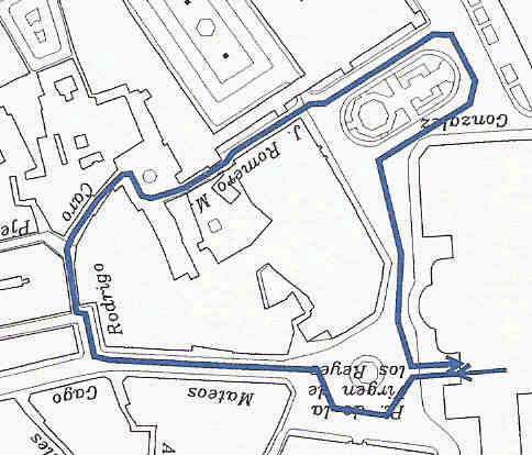 Por el contrario ha optado por una opción que recuerda una procesion extraordinaria de 1948, donde sin llegar a meterse, absurdamente, por las estrechas calles del barrio de Santa Cruz, salio por la Puerta del Principe (hoy de la Copa de la UEFA,) Plaza del Triunfo dando una vuelta completa a la Plaza , Plaza de la Virgen de los reyes y entrada por la Puerta de los Palos .Pues a no realizar recorrido mas amplio quizas esta procesión de 7 de Agosto de 1948 , hubiera sido la solución mas lógica . No hay que inventar lo que ya estaba inventado .-
