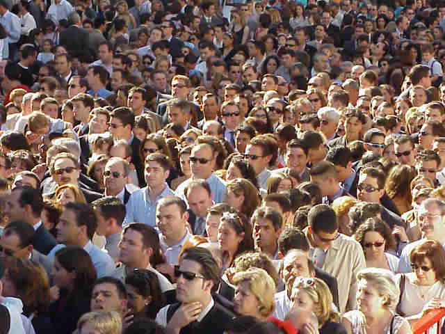 Señor/a pontencial visitante de la Semana Santa de Sevilla , fijese bien en esta foto. Lejos de asustarle es para que tenga una visión realista de a lo que se va a enfrentar . A uno le entra la risa floja cunado te hablan que en las manifestaciones, esta establecido que un metro cuadrado caben tres personas , les aseguro que aqui en Sevilla en esa misma medida de superficie caben muchas mas personas comprimidas , aqui tiene la prueba irrefutable. Como en mi ánimo no está desanimarle y/o/u asustarle permitame unos consejos para como desenvolverse en una bulla y no morir en el intento ( aclaración para los carentes de sentidos del humor es una broma ) .-
