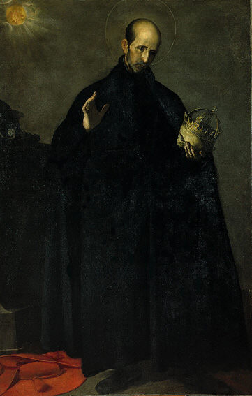 En ella se ve al Santo jesuita , contemplado una calavera coronada, que simboliza la muerte de la emperatriz Isabel , que le provocó tan honda impresión , que como les comentaba dijo la famosa frase "Nunca más servire a un señor que se pueda morir". Curioso el detalle del capelo cardenalicio en el suelo, que lo rechazó por tres veces .-