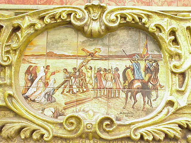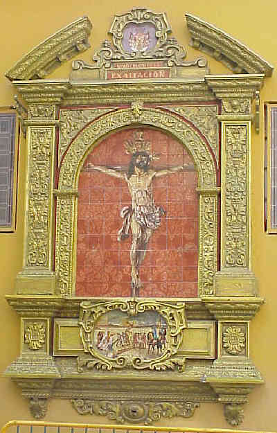 26 de Noviembre de 2006Como ayer veíamos tantas cartelas donde aparecia un caballo y la que mas se repetia era la que representaba la Exaltación, seria injusto que nos dejaramos en el tintero uno de los mejores retablos cerámicos penitenciales mas completos de Sevilla el dedicado como reza en el mismo al Stmo Cristo de la Exaltación en la Parroquia de Santa Catalina ( cerrada por obras y lo que te rondare morena ) .-