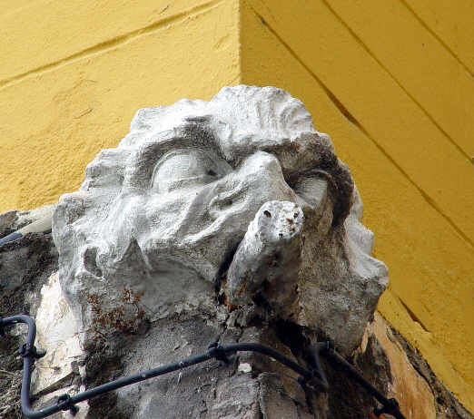 Pues bien los tiros van por ahi ,pues esta escultura era ( y es ) el león de las riadas, la cabeza de leon, en el Puente de Triana , marcaba el limite del nivel del río antes de que Sevilla se anegase de agua., cosa que hubo un tiempo que pasaba con realtiva frecuencia de ahi su utilidad y como a los sevillanso no les llegaria la camisa al cuerpo viendo como el rio llegaba de forma amenzante al felino .-