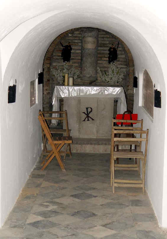 Las Santas tenían como decia su tienda en la Puerta de Triana.( igual estaban al lado de donde hoy esta Casa Pueyo ) Allí, como decia las cogieron presas y las llevaron atadas, hasta el Pretorio o Palacio de Justicia, que estaba donde está hoy la iglesia de María Auxiliadora., como veran todo un paseito andando y las metiron en la prisión que ven en la foto .-