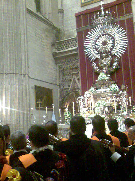 ".....participarle que la tuna de la facultad de Ciencias Económicas y Empresariales de la Universidad de Sevilla, fue en la noche 7 de Dciembre , vispera de la fiesta de la Inmaculada Concepción de Maria, la primera tuna de Sevilla en entrar en la Catedral para felicitarle en Su casa, Su Santo a la Madre de Dios.-