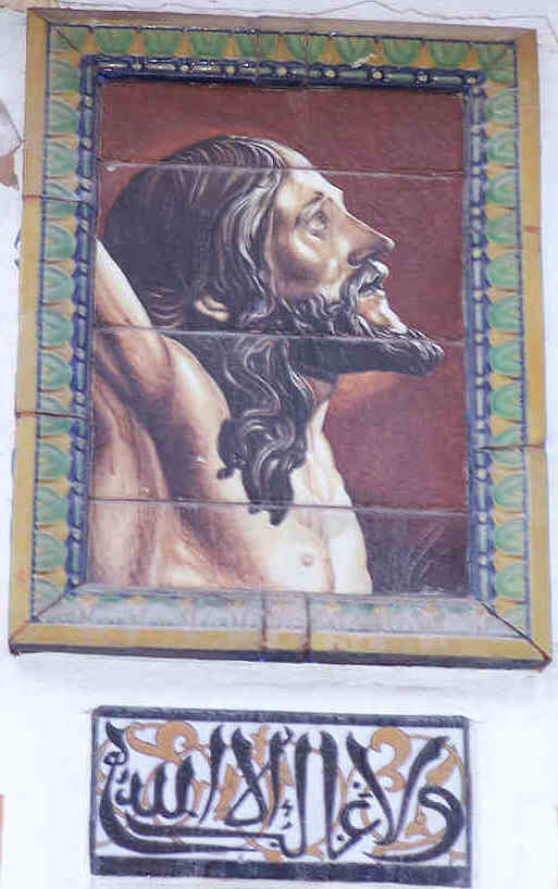 En la parte inferior del mismo otro azulejo con letras arábicas que su traducción es la siguiente : "SOLO HAY UN DIOS" o lo que es lo mismo El Shahada, el Credo Islámico .-
