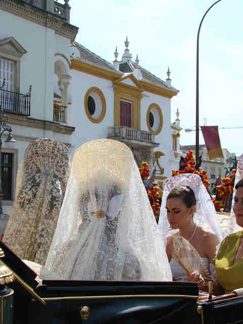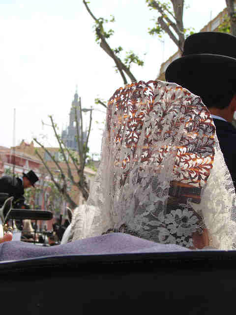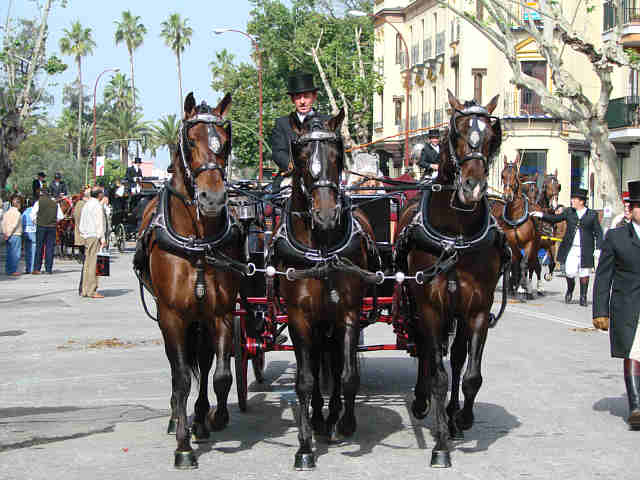 Para compensar tanta horteridad que nos hna implantado los obreros españoles en nombre de una falsa modernidad de atrezo;, de ridiculas setas, pieles (in)sensibles, de impresentables bancos y farolas de ocasión; trenes de juguetes, en compensación como decia mi amigo, ayer nuestros ojos vieron otra Sevilla, no una Sevilla del siglo XIX, como erradamente comentó alguien, sino una Sevilla del Siglo XXI, que tiene el bolsillo, el paladar, el tiempo, el buen gusto de presentar la magnificencia de la conjuncion de magnificos carruajes, caballos, guarniciones, como si lo acabaran de estrenar todo, con las hermosas guindas de este inmeso pastel de nuestra hermosas mujeres ; en un marco perfecto, en un dia perfecto , como heraldo de nuestra Feria.-