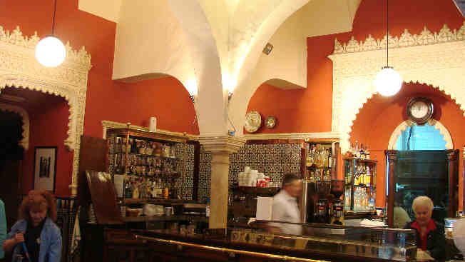 Cuantas personas habran piasado este ajedrezados suelo o apoyado en la barra de caoba , aguardando un cita o recuperandose de las calores con una fria caña y una deliciosa tapa , de este emblemático bar o sentado en uno de su veladores a la sombra de los naranjos de la calle Mateos Gago, que milagrosamente se han salvado de la indiscriminada talas tal del gusto de nuestro actual consistorio .-