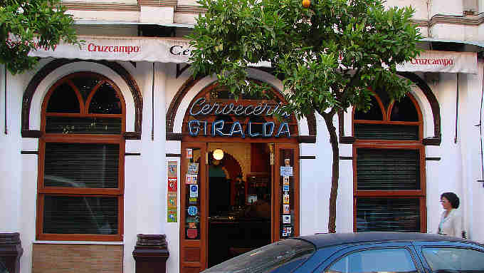 15 de Mayo de 2007Como hoy comenta don Victor Gonzalez Ramallo en las Estampas de Sevilla,en La cerveceria Giralda en la nostalgia es incomprensible que hoy ( trece tenia que ser ) cierre sus puertas el Bar Giralda , referente en los ultimos años para cuantas personas hayan visitado Sevilla y se hayan tomado una cerveza o copa de manzanilla a la sombra de la Giralda .-