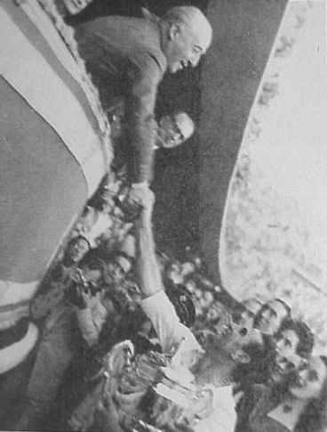 El Caudillo le entrega la Copa del Generalisimo de 1948 al capitan sevillista Joaquín