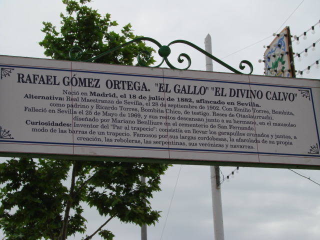 30 de Abril de 2007Por aquello que todos los santos tiene octava y ayer acabó la Feria y hoy es el afortunadamente desaparecido lunes de resaca , finalizamos hoy nuestros recorrido por todas las calles de la Feria, donde insisto tiene la oportunidad de leer las pequeñas fichas ceramicas de todos los histoicos toreros sevillanos que le dan nombre . -