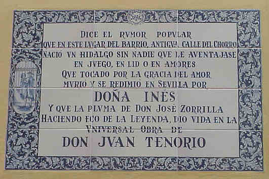 20 de Febrero de 2007Ignoro si por la contemplación de este azulejo, en una intransitable Plaza de los venerables invadida de veladores ,nuestro preclaro Ayuntamiento Obrero Español, ayer presentó un programa bajo el titulo Mitos de Sevilla y por lo visto el primero en suerte es Don Juan ( con la que esta cayendo en Sevilla y ahora nos vamos a dedicar a esto ).-