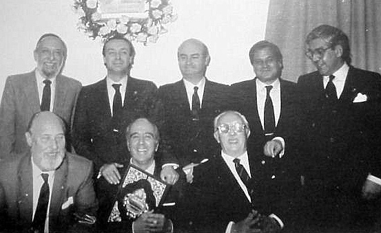 23 de Enero de 2007 Una imagen tremendamente entrañable año 1989, Tertulia el Ciro Apagado abrazado a las pasta del pregon Don Juan Moya Garcia ,( progonero en 1963) para entregarsela a su hijo en pie tras el Don Juan Moya Sanabria que tristemente falleció ayer .A su derecha los tambien pregonero Don Antonio Soto Cartalla y en pie Don Alfedro Flores .- El pregón de Don Juan Moya Sanabria sin duda fue profético, pues entre otras cosas y verso dijo lo siguiente : ¿Por qué Dios mío, por