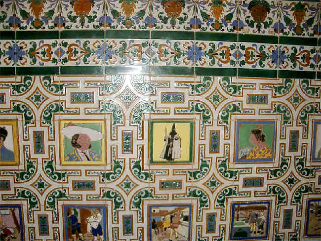 No se si recocordaran nuestros paseo por el Parque de Maria Luisa , donde descubriamos un Don Quijote cerámico y Nazarenos y Armaos en el parque , pues bien estos que ven aqui son primos hermanos , donde podemos observar una nazareno de la Esperanza de Triana con su cirio y todo , que no les quepa la menor duda ha sido testigo durante muchos años de reuniones y tertulias de sevillanos cofrades y noctambulos .-En este establecimiento existe una invento en lo que a medidas del sistema metrico decimal se refiere .-