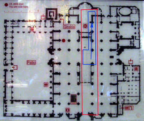 8 de Julio de 2007 Segunda parte del recorrido en azul , partiendo desde el cimborio hasta la capilla de la Virgen de los Reyes