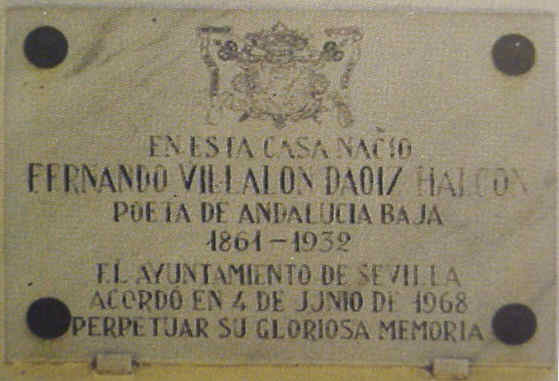 Pues bien esta placa tiene un gazapo de los buenos, porque el poeta de los toros y lo caballos que en Sevilla tiene un pequeño, interesante y privado museo ( VER ) realmente murio el 8 de marzo de 1930 , no 1932 como reza en la lápida .-