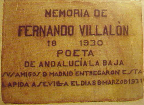 En 1915, cuando murió su padre, traslado su residencia de Morón a Sevilla, a la casa que tenía en la calle San Bartolomé nº 1., precisamente alli hay otra placa homenaje de sus amigos de Madrid en el primer aniversario de su muerte el 8 de Marzo de 1931 , con el año del fallecimiento correcta 1930 y un desconcertante número "18".- .-