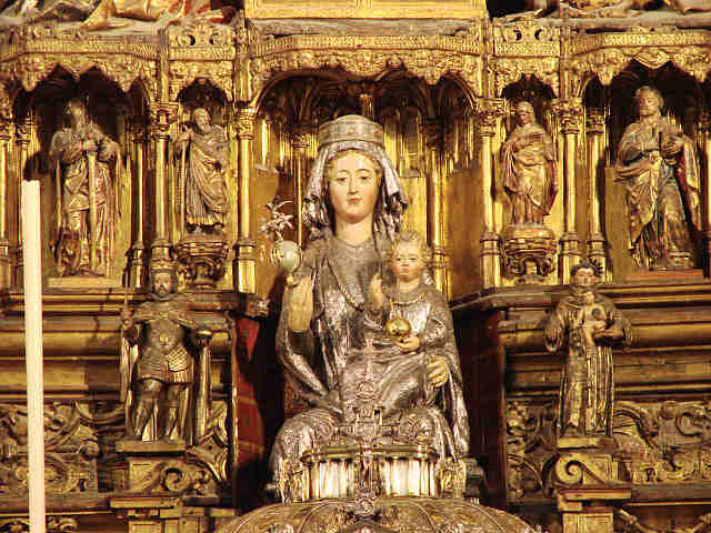 En su centro figura una magnifica escultura gótica de la Virgen de la Sede, realizada en madera y revestida de plata, que puede considerarse como obra de la segunda mitad del siglo XIII