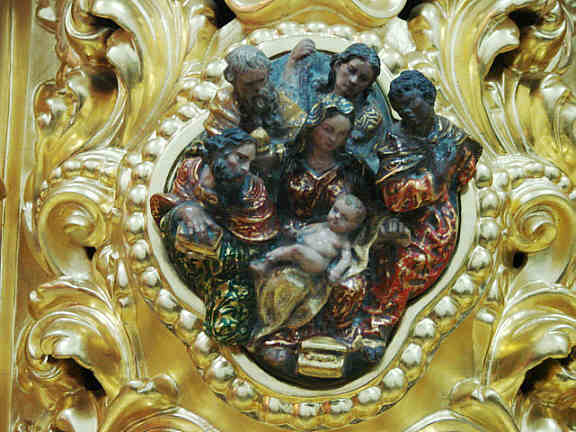 | HERMANDAD DE LAS CIGARRERAS Cartela del paso de Misterio donde se representa la Adoración de los Reyes Magos , obra de Navarro Arteaga , estrenada en 1998 .-