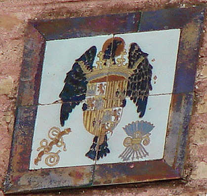 10 de Octubre de 2007 Por aquello de que el próximo dia 12 de Octubre es el día de la Hispanidad ( lo que queda de ella ); por aquello de que los obreros españoles no se han precocupado mucho en que los españolitos peatonalizados conozca la historia de España , ahora eso si subvencionan con un kilo de las antiguas pesetas , no a los que estudian, sino a los que no abandonan las aulas y no se van a la calle a fumar porros y litronas , y por aquello que uno esperando que salga una cofradia mira mas que un borrico atao , miren ustedes por donde me encuentro en una espadaña esta joya .- Usando el teleobjetivo saque esta foto y se la mostré a un compañero de fatigas de reportajes cofradieros y a esto que ocurrio algo muy sevillano , un tercero que absolutamente nadie le habia dado vela en este entierro , al ver la misma exclamó ignorantemente :" Ese es el escudo fascista de Franco".- Lo que aqui ven puede que sea de las representaciones mas antiguas del primogenio escudo de una España entre 1475 y 1492 .- Es de los primeros de los escudos que puede considerarse como Escudo de España , con el águila coronada de San Juan como soporte ( ya que Isabel I de Castilla fue coronada en la fiesta de este santo ), adoptaron Isabel I de Castilla y Fernando II de Aragón en 1475. En este escudo quedaban representadas las dos mayores entidades políticas existentes en la Península Ibérica a finales del siglo XV: la Corona Castellano-Leonesa, que se extendía de norte a sur de la península, desde el Cantábrico al Mediterráneo, y que comprendía los territorios de las actuales Comunidades Autónomas de Galicia, Asturias, Cantabria, Vascongadas , La Rioja, Castilla y León, Madrid, Extremadura, Castilla-La Mancha, Murcia, Andalucía y Canarias; y la Corona de Aragón, o Confederación Catalano-Aragonesa, que agrupaba a las actuales Comunidades Autónomas de Aragón, Cataluña, Comunidad Valenciana e Islas Baleares. Señores vascos, señores catalanes, como decía el recordado Gandia, lo siento bastante , pero esa es la historia que ustedes no enseñan en sus acatetadas aulas nacionalista .- Unidas ambas Coronas bajo la misma Monarquía, son el origen más inmediato de la España actual, cuya extensión territorial no quedó, sin embargo, completa hasta la reconquista de Granada en 1492, y la posterior incorporación del Reino de Navarra a la Corona de Castilla, tras su conquista por Fernando El Católico en 1515. El escudo se diseñó adoptando el modelo establecido por Fernando III al unir los reinos de Castilla y León en 1230, en el que en un escudo cuartelado se alternaban los emblemas de ambos reinos. En el nuevo escudo, las armas de Castilla y León se alternan con las de Aragón y las Dos Sicilias ( quie posteriormente estas fueron sustituidas por las cadenas de Navarra ). A partir de 1492 se añade entado en punta con el emblema del recién conquistado reino de Granada .- El yugo representa la unión de los reinos de Castilla y Aragón.y la "Y" de Isabel .Las flechas representan los cinco reinos unidos que forman la nación española ( lo siento pero las provincias catalanas y vascas nunca fueron reinos ) y la "F" de Fernando.- Este historico escudo cerámico esta en la españda de San Juan de la Palma ,(Franco no aparece por ningún lado, por eso no hay peligro que de salga ningún carajote exigiendo su retirada ), solo hay que fijarse .-