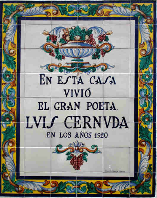 En este sentido nuestro paisano Luis Cernuda no se puede quejar , pues Sevilla esta llena de azulejos cernudiados como el de la calle Acetre ( VER ) , así como una especie de vía crucis cervantino, pero dedicado al Ocnos de Cernuda en diferentes calles y plazas (VER ) .-