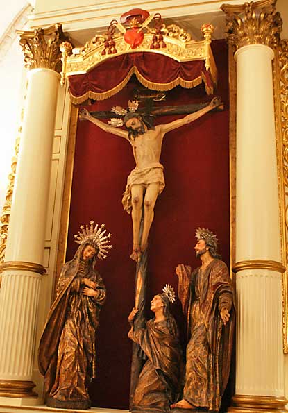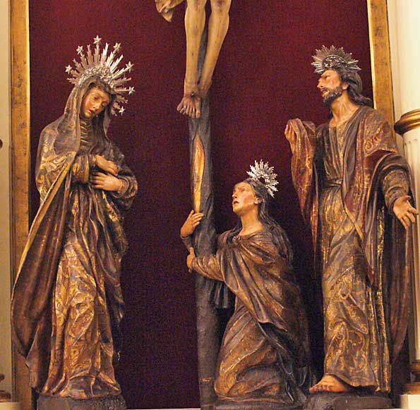 En uno de los muros laterales este interesante grupo escultorico del Calvario , obra sevillana siendo todas del siglo XVII