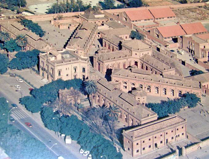 Como se ve en la foto aérea había un cuerpo central destinado a oficinas ( ver con mas detalle en la foto inferior ) y tras el en forma de varillas de abanico cinco naves destinada a mataderos y oreo clasificados por el tipo de ganado . La parte posterior estaba dedicado a venta de ganado de reses vivas .-
