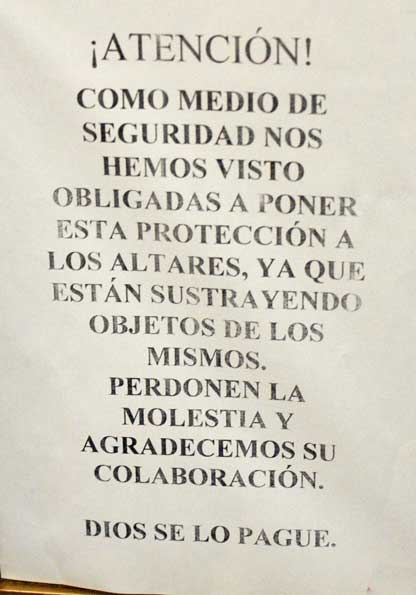Aquí abajo tiene la explicación de esta atrocidad , que aunque justificable, ya hoy en día existen otros métodos de seguridad . Una muestra mas de la inseguridad ciudadana que reina en Sevilla de la que no se salvan ni las iglesias
