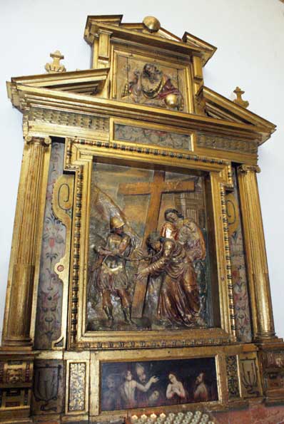 Retablo que en su cuerpo central representa Camino del Calvario de Juan de Oviedo el Viejo terminado en 1587