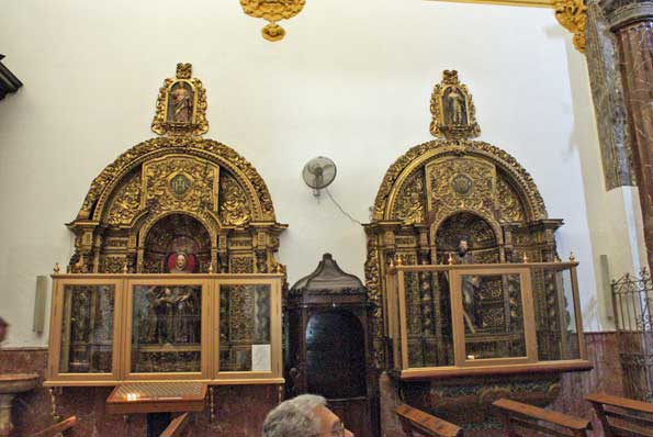 Como pueden ver incomprensiblemente a estas joyas le han colocado delante como una especie de medias vitrinas ( o el carpintero tomó mal las medidas ) que impide la contemplación visual mas elemental de estas obras del finales del siglo XVII .-