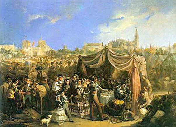 Hoy a base de mucho buscar y rebuscar , pareciendo increíble con un tema tan colorista como nuestra Feria de Abril haya una producción tan escasa y localizada prácticamente en la misma etapa romántica de la pintura sevillana.-