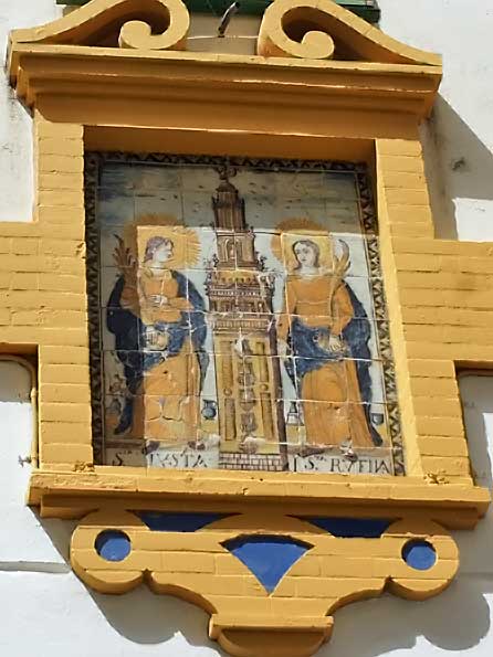Por aquello de que todos los santos tienen octava , hoy les traigo los lienzos cerámicos dedicados a nuestras Santas Patronas , Santa Justa y Santa Rufina ( la pobre que siempre se dejan atrás lo de Santa ) .-